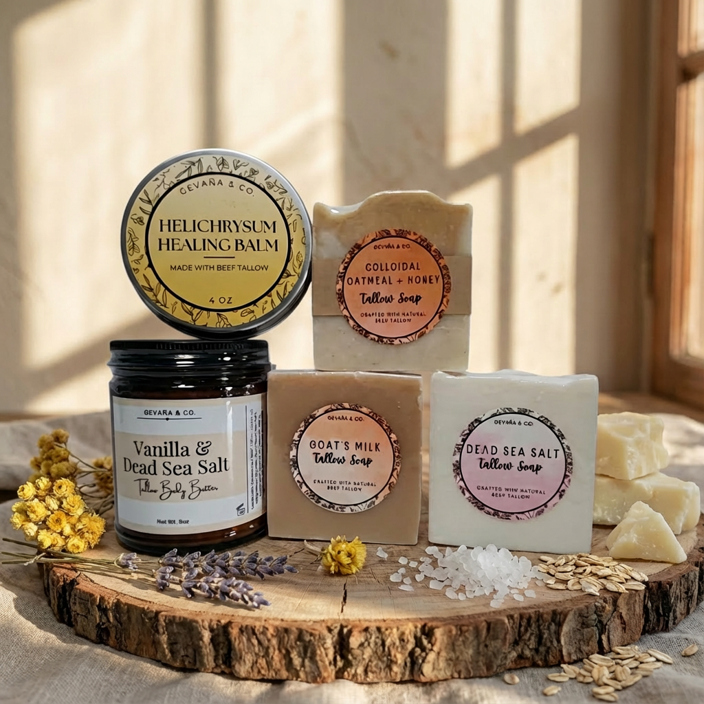 Created for delicate and reactive skin, this collection focuses on soothing, barrier-supporting care using gentle, skin-loving ingredients. Mineral-rich salts help cleanse without stripping, oatmeal and honey comfort and protect, goat milk nourishes and softens, and helichrysum provides calming, restorative care—making this set ideal for skin that needs balance, moisture, and relief without irritation.