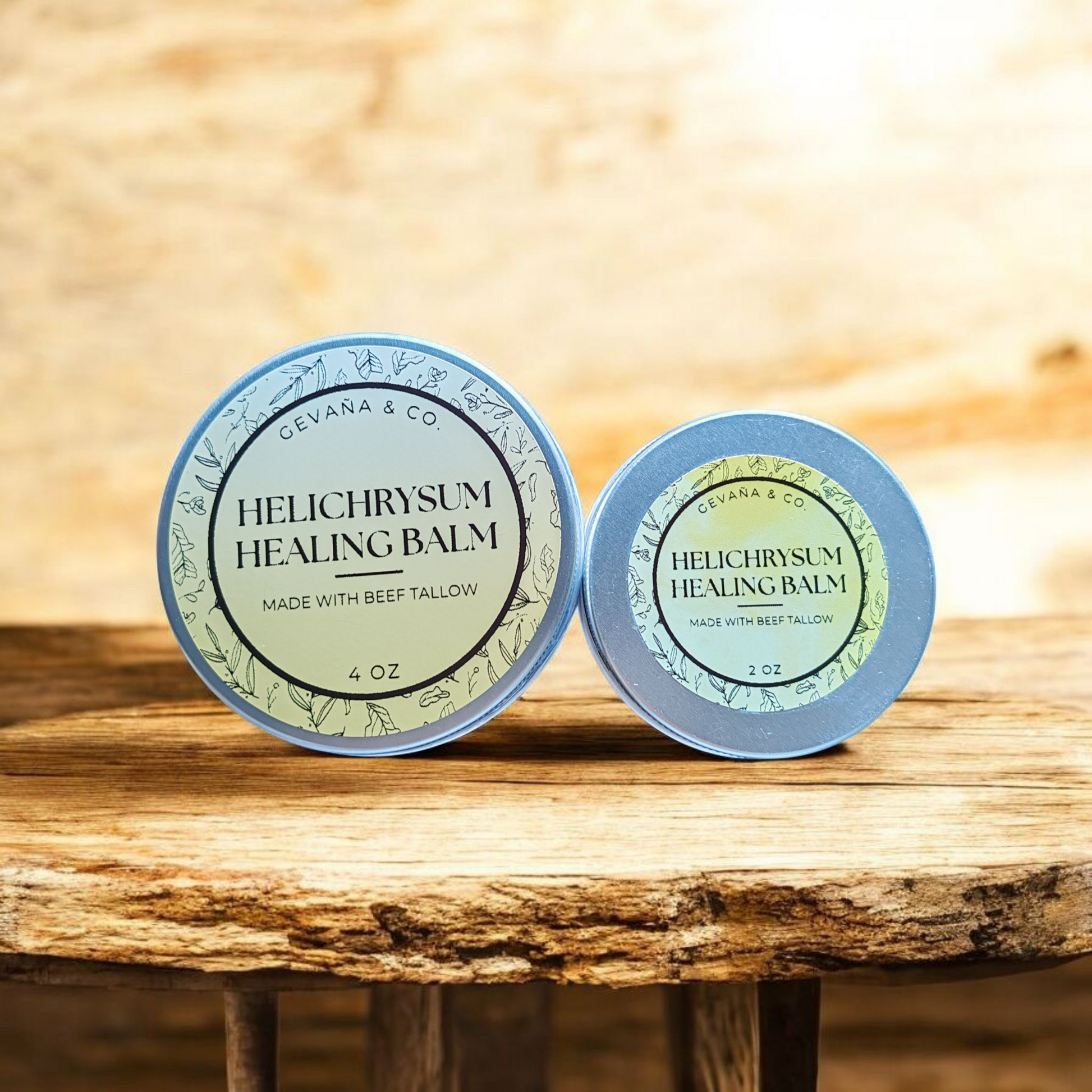 Soothe, restore, and protect your skin with our Helichrysum Healing Tallow Balm — a rich, firm balm that melts gently on contact to deliver deep hydration and targeted care.